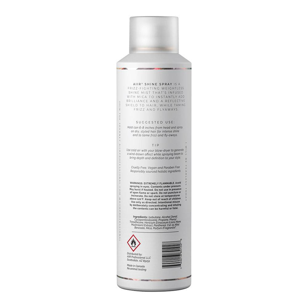 Hold can 6-8 inches from head and spray on dry, styled hair for intense shine and to tame frizz and fly-aways.